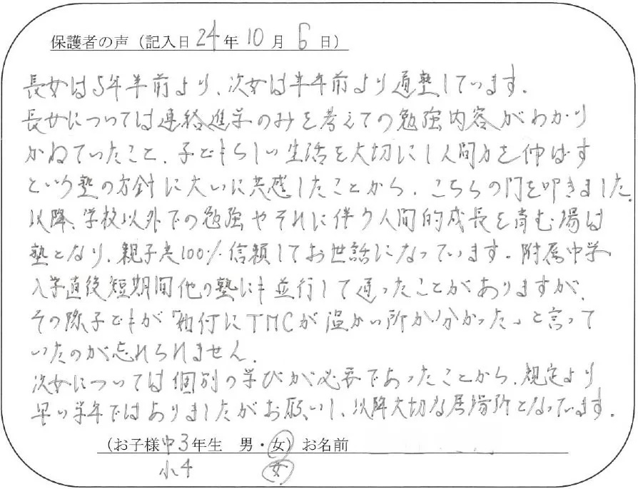 こういうことをご理解いただけないお子さんやご家族の方には入塾をご遠慮いただいております。
